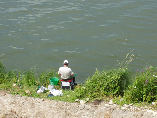 ![]() A fisherman in Brehemont, who was doing amazingly well at getting fish to bite at his unbaited line.