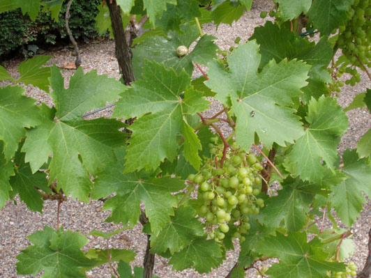 Grapes, a snail, and (I discovered after taking the picture) a fly