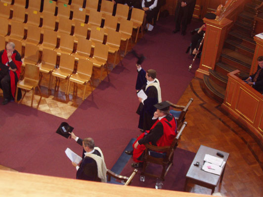 ![]() Seats with backs. In the Sheldonian. Must be important people. |